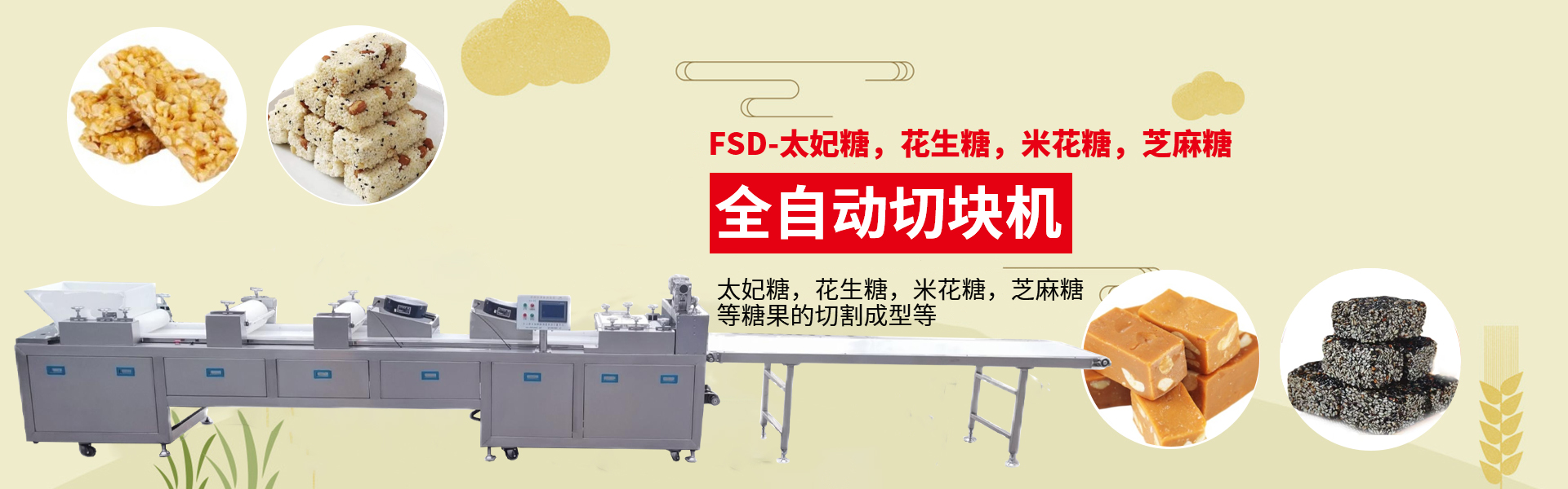 近年來(lái)研制開發(fā)(fā)沙琪瑪、雪花酥、米花糖、花生酥等休閑食品機(jī)(jī)械專業(yè)(yè)生產(chǎn)(chǎn)廠家